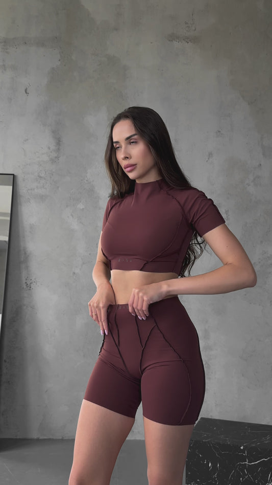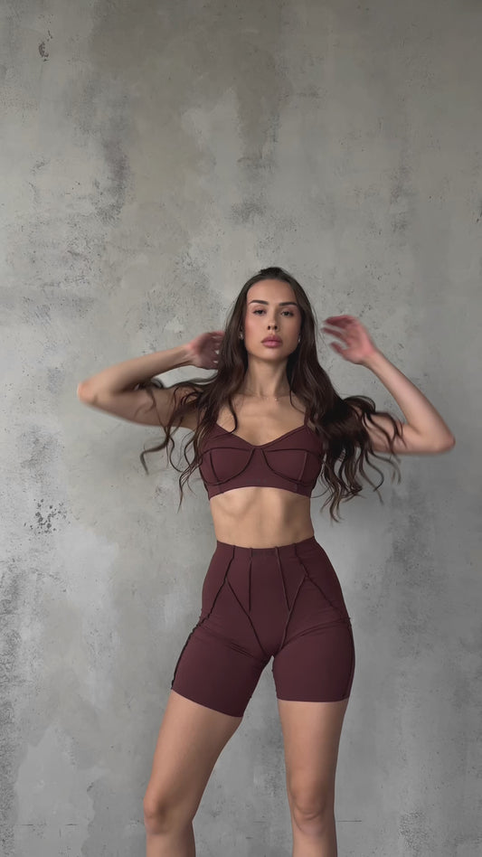 Zestaw treningowy Damskie Butterfly top z szortami czekoladowy