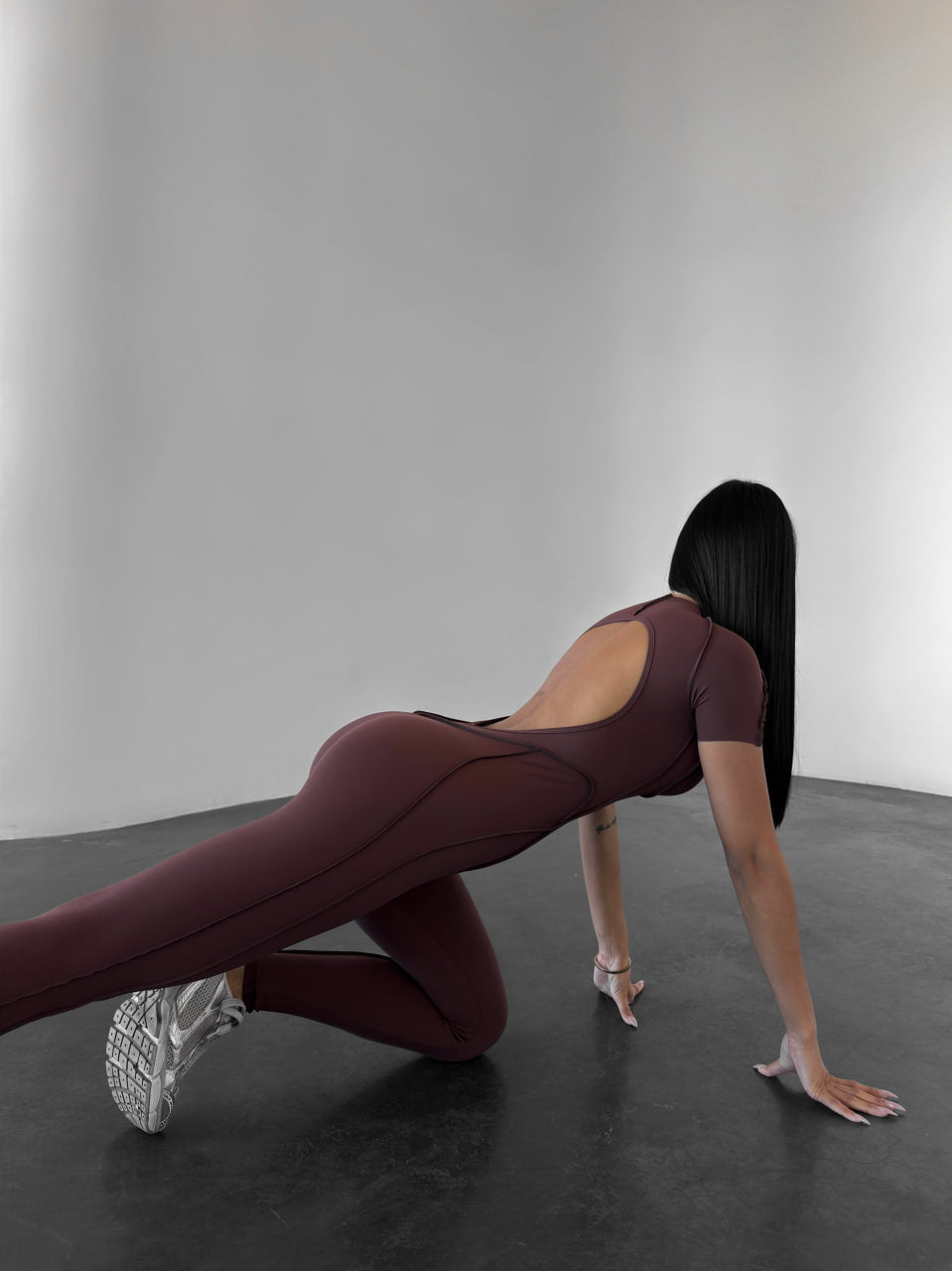 Otwarte plecy, akcentujące szwy podkreślają sylwetkę. Dla wygody podczas treningu top posiada wyjmowane miseczki.