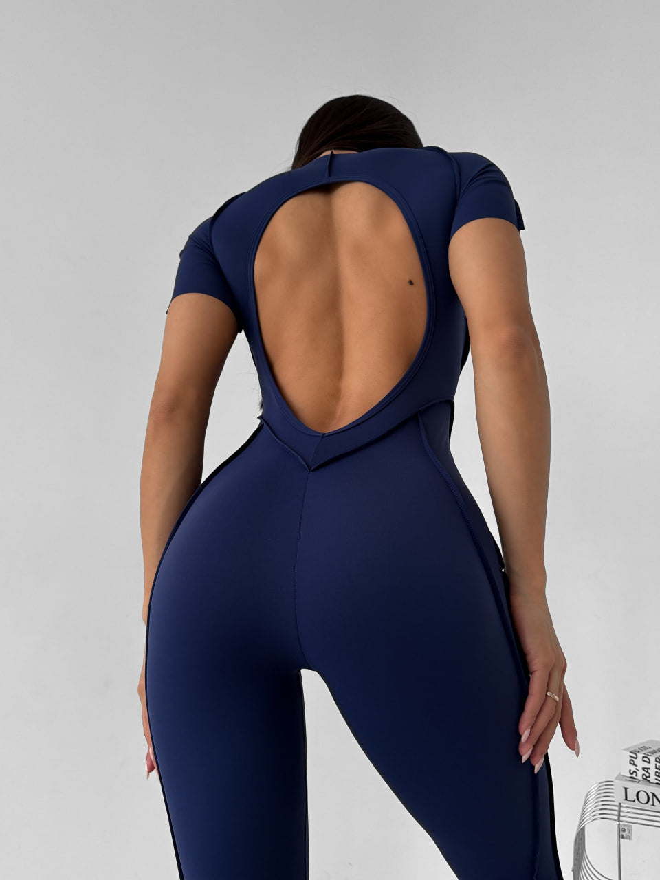 Otwarte plecy, akcentujące szwy podkreślają sylwetkę. Dla wygody podczas treningu top posiada wyjmowane miseczki.