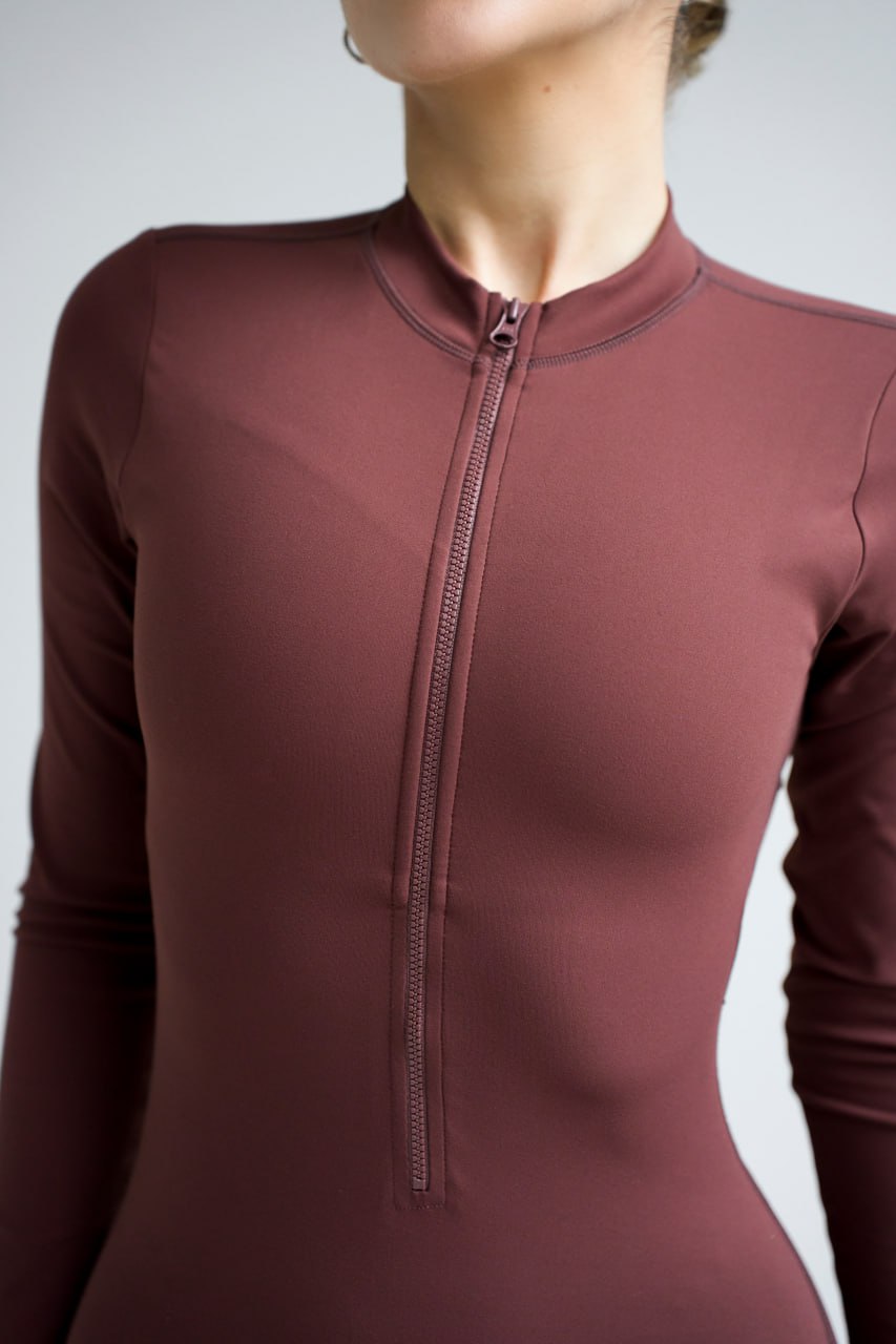 Kombinezon ma zamek błyskawiczny z przodu, a także wyjmowane miseczki.