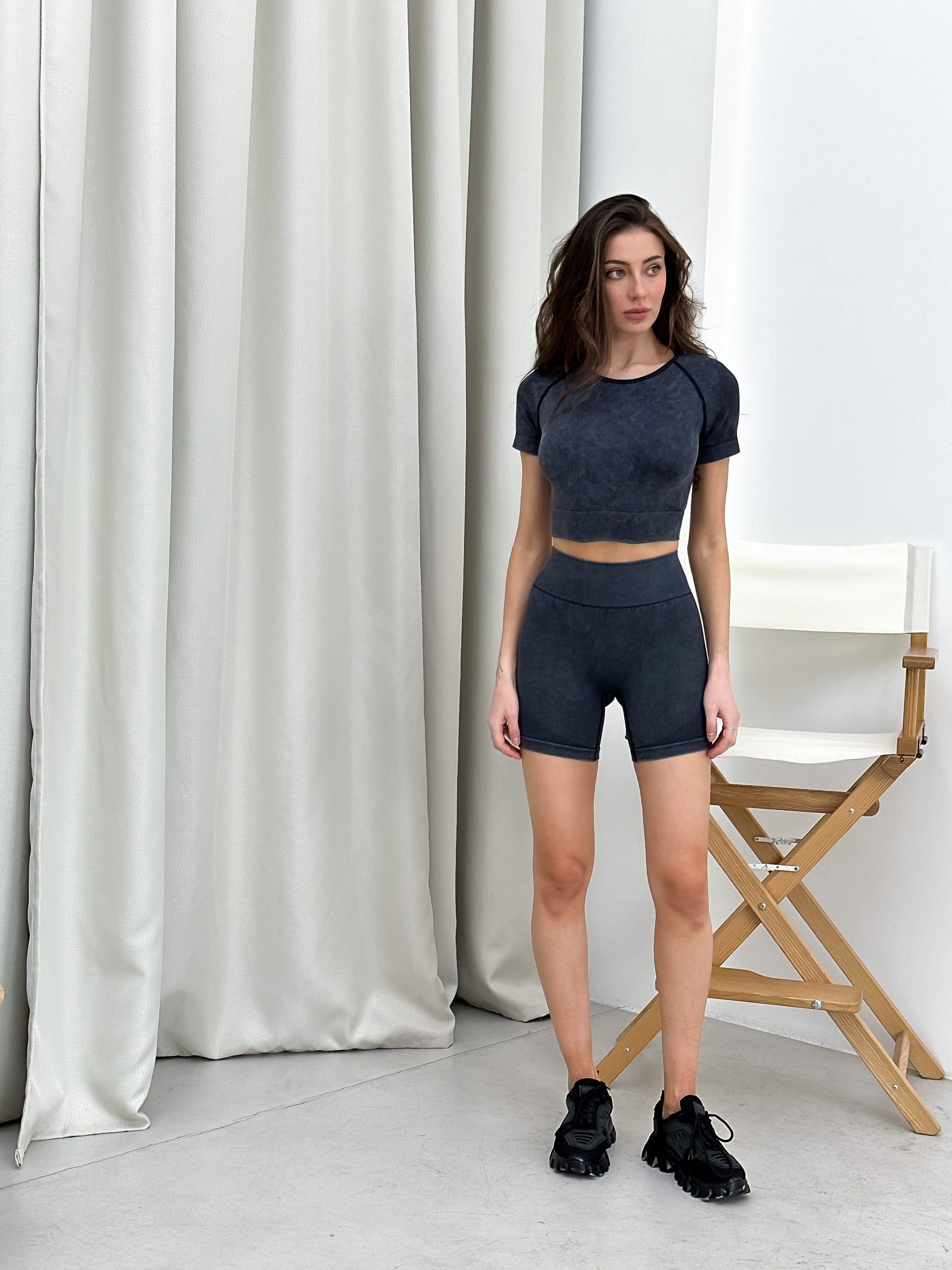 Zestaw treningowy Damskie szorty z t-shirtem Marbel grafit