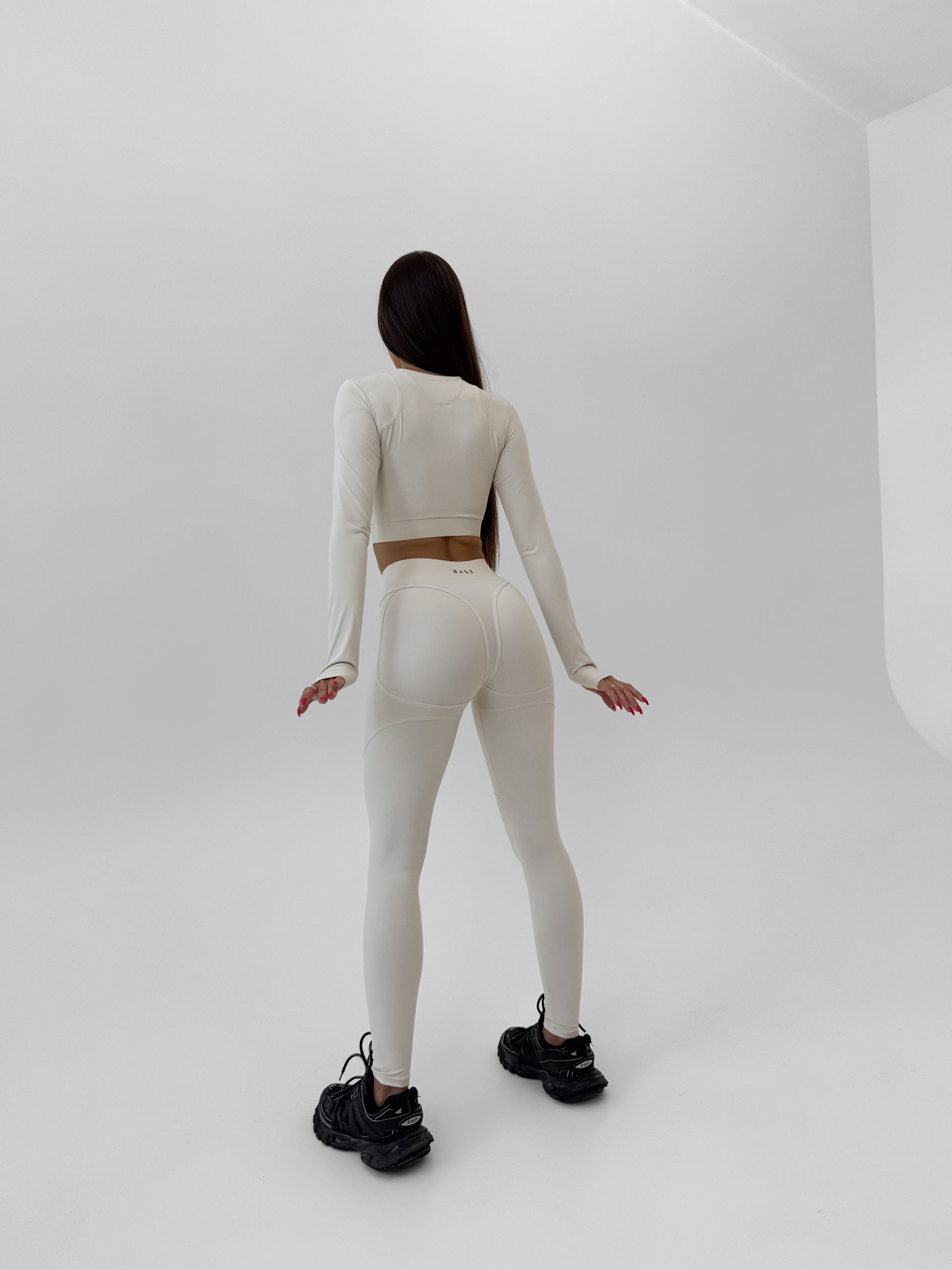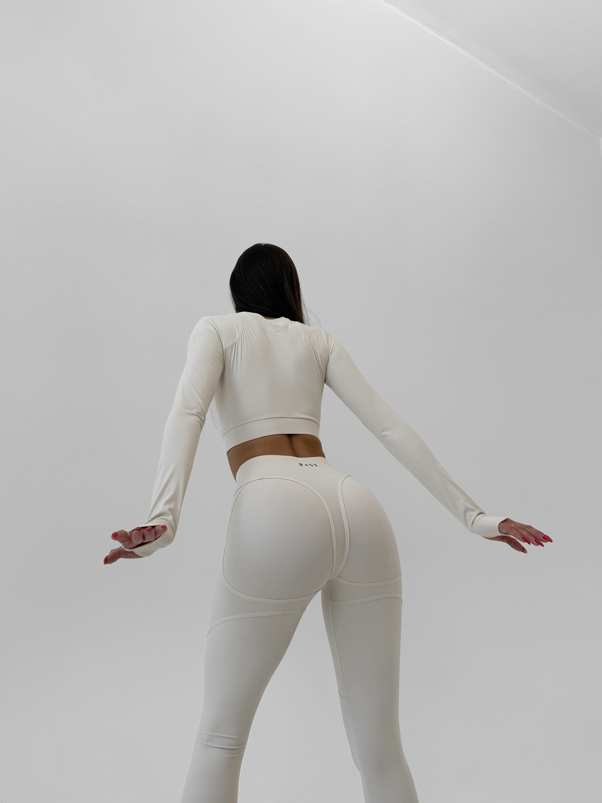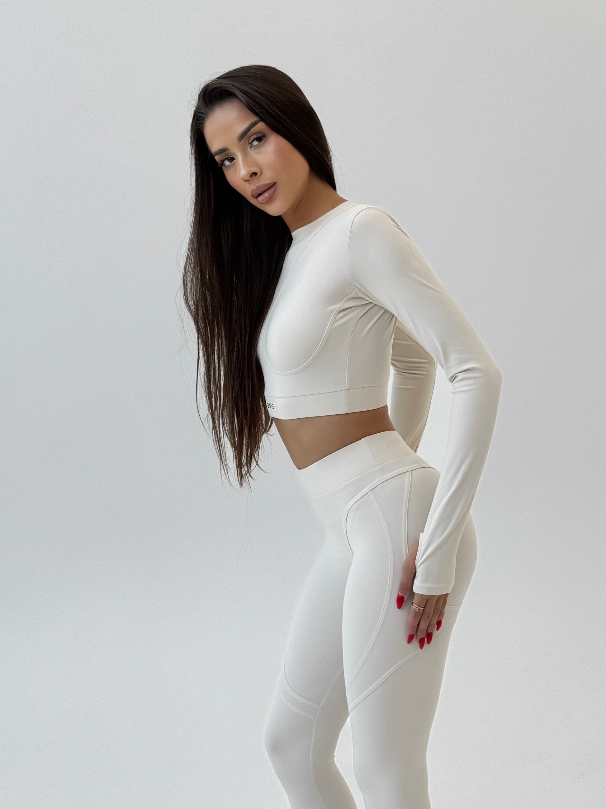 Rashguard posiada szeroką gumkę u dołu, która zapobiega podwijaniu się podczas treningu. Legginsy mają wysoki stan i imitację majtek. Materiał jest gęsty i dobrze dopasowuje się do ciała. Dzięki akcentującym szwom komplet prezentuje się niezwykle oryginalnie, a co najważniejsze, zapewnia maksymalny komfort.😍