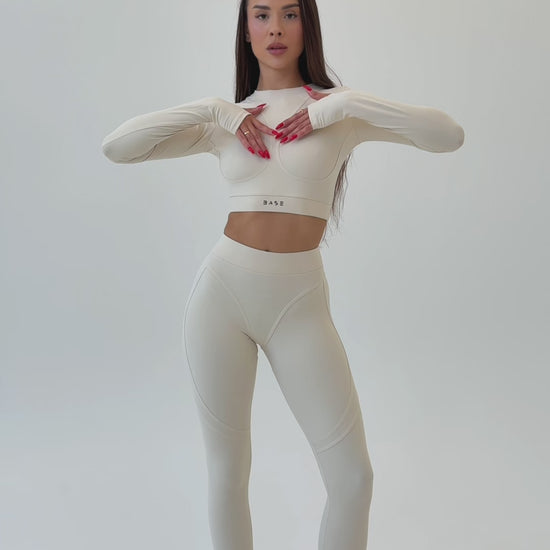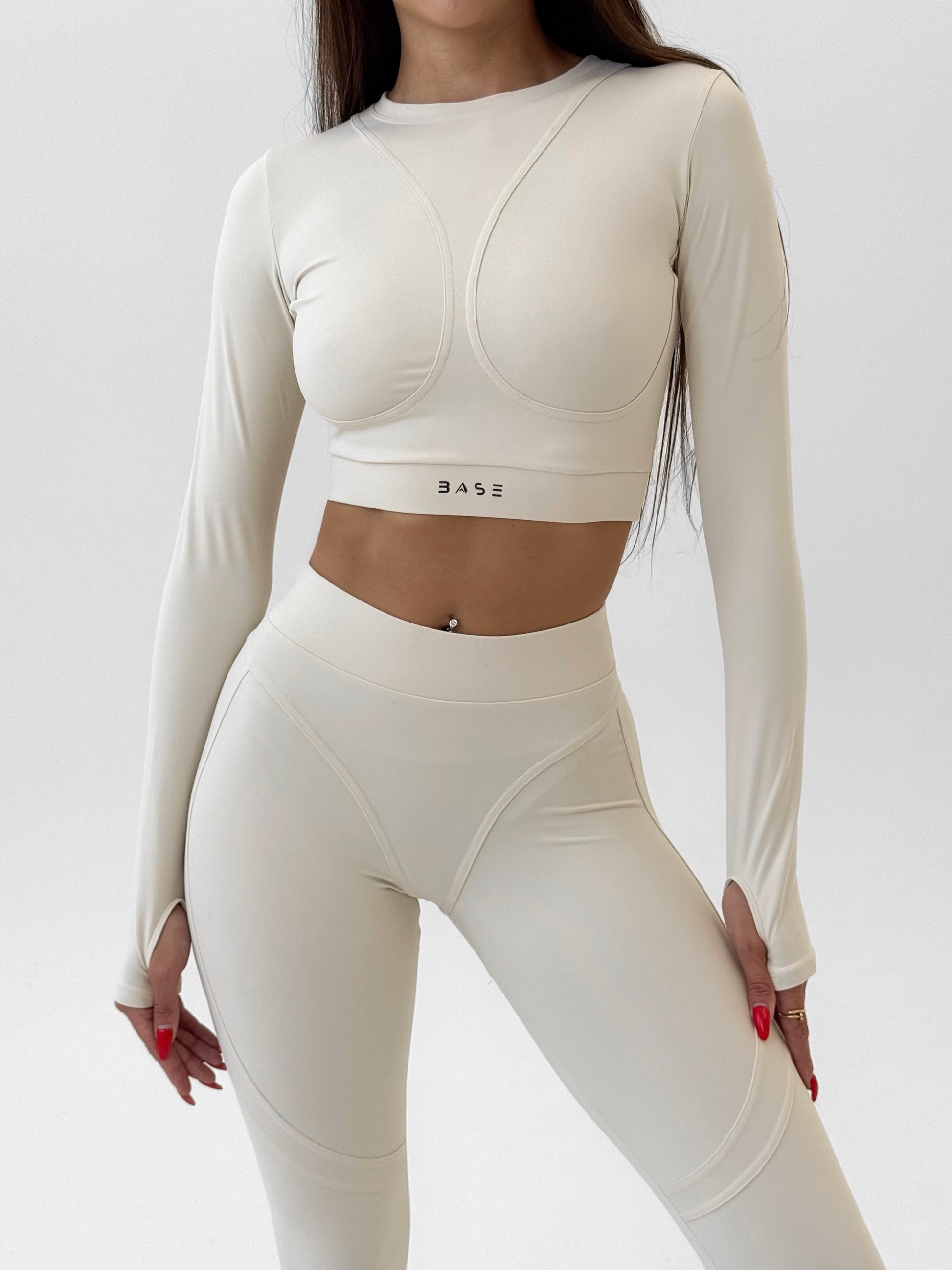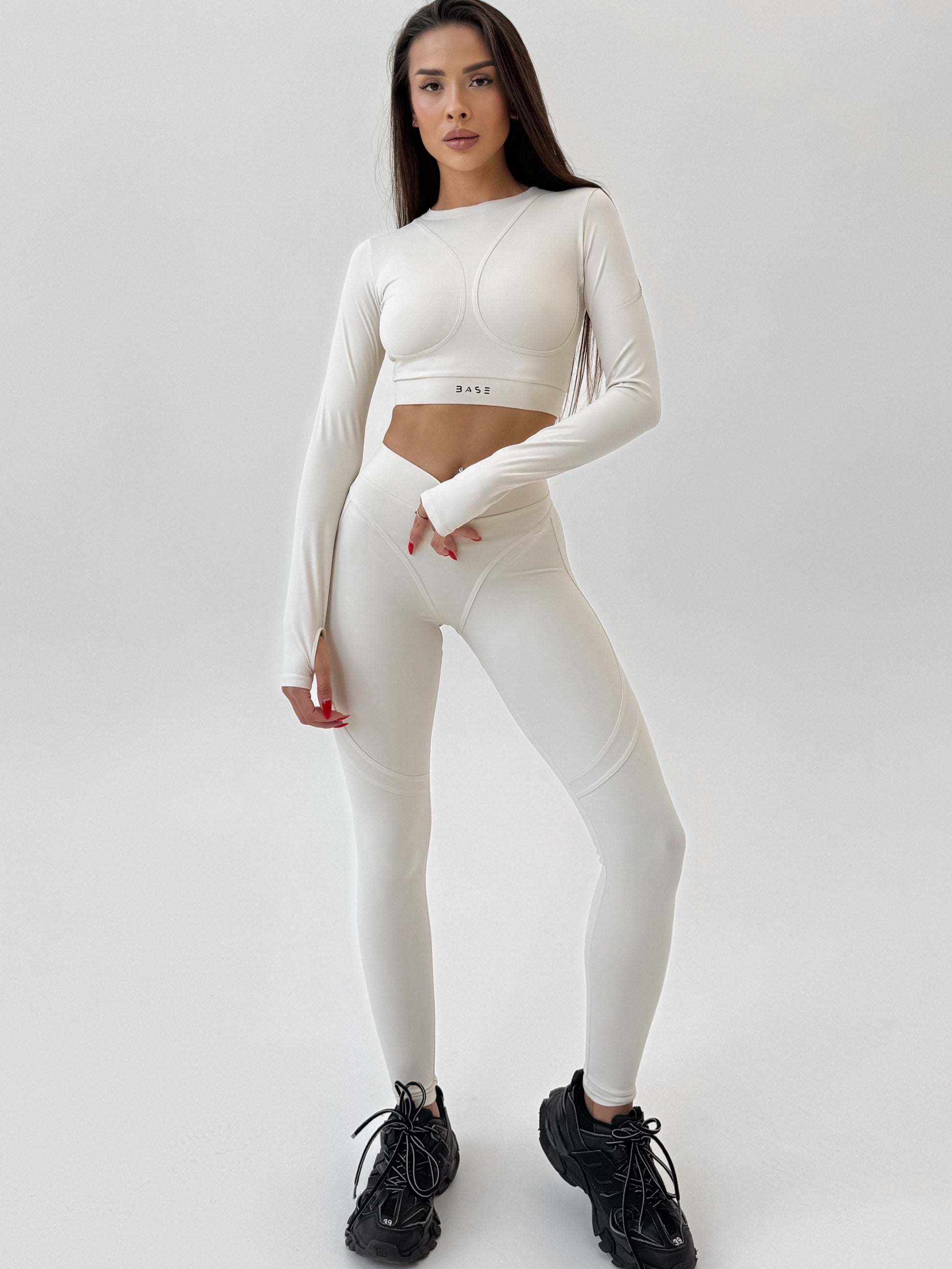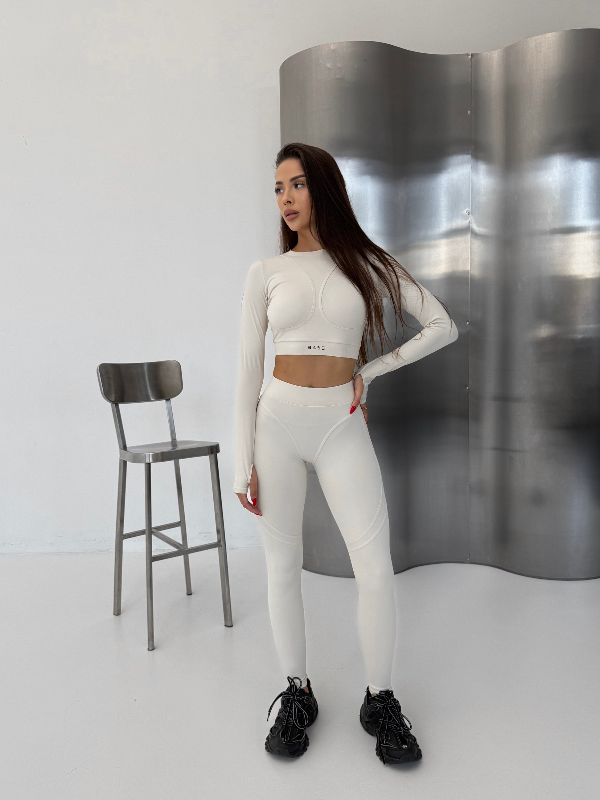 Rashguard posiada szeroką gumkę u dołu, która zapobiega podwijaniu się podczas treningu. Legginsy mają wysoki stan i imitację majtek. Materiał jest gęsty i dobrze dopasowuje się do ciała. Dzięki akcentującym szwom komplet prezentuje się niezwykle oryginalnie, a co najważniejsze, zapewnia maksymalny komfort.😍