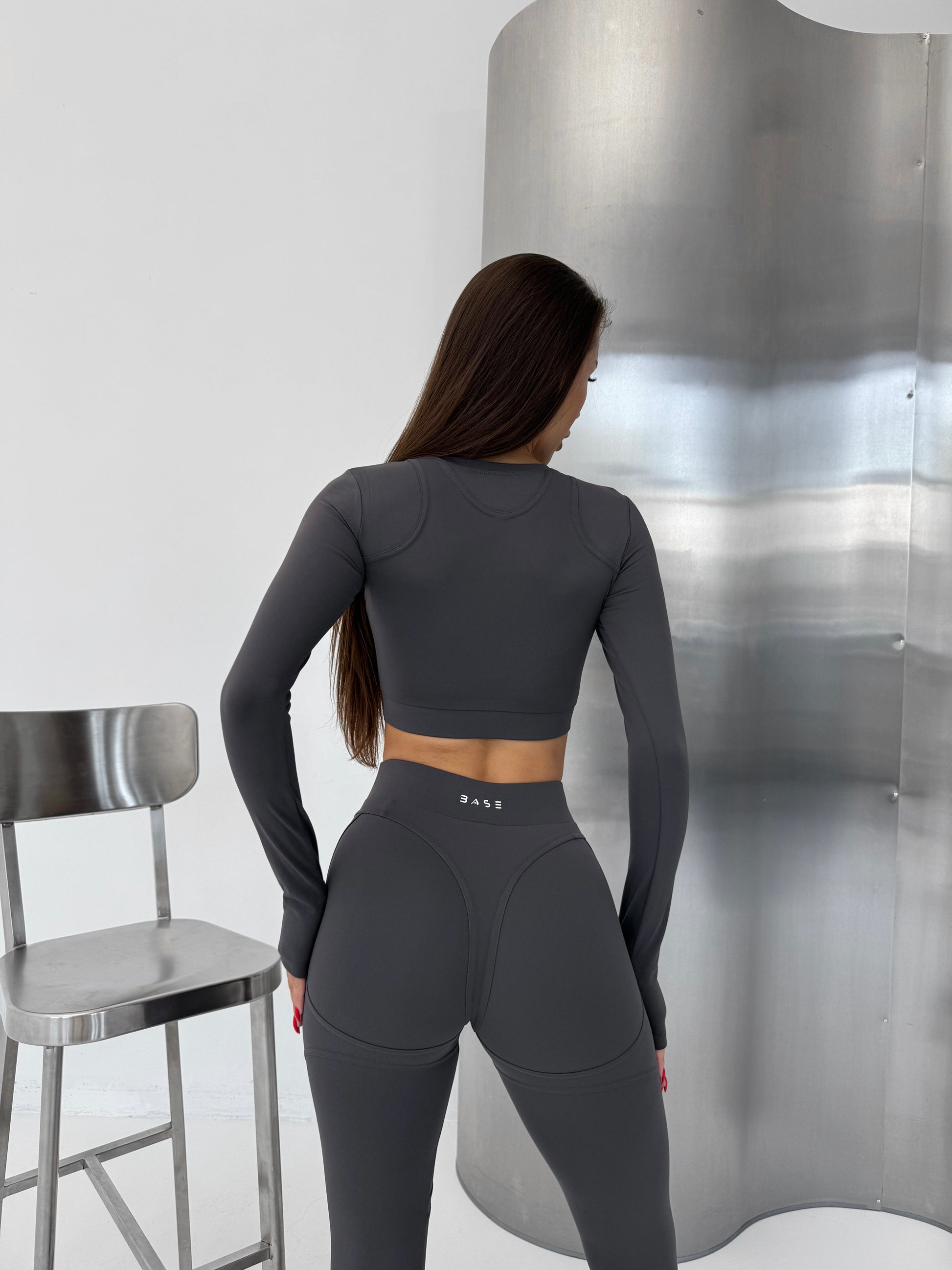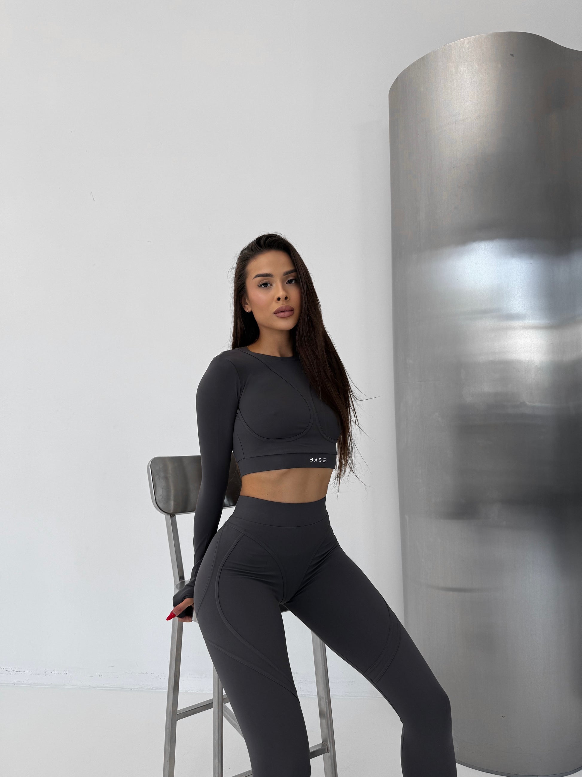 Rashguard posiada szeroką gumkę u dołu, która zapobiega podwijaniu się podczas treningu. Legginsy mają wysoki stan i imitację majtek. Materiał jest gęsty i dobrze dopasowuje się do ciała. Dzięki akcentującym szwom komplet prezentuje się niezwykle oryginalnie, a co najważniejsze, zapewnia maksymalny komfort.😍
