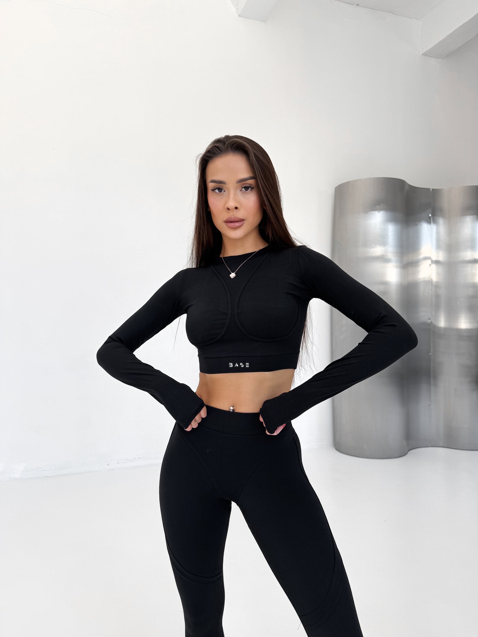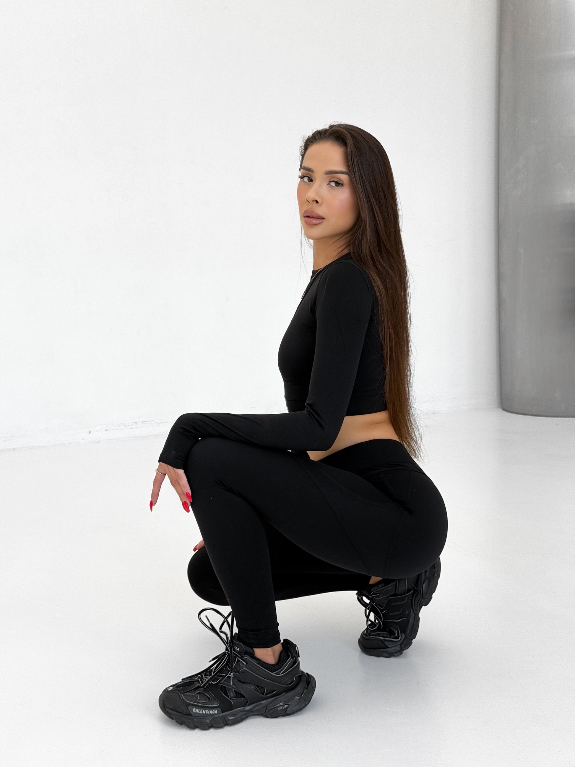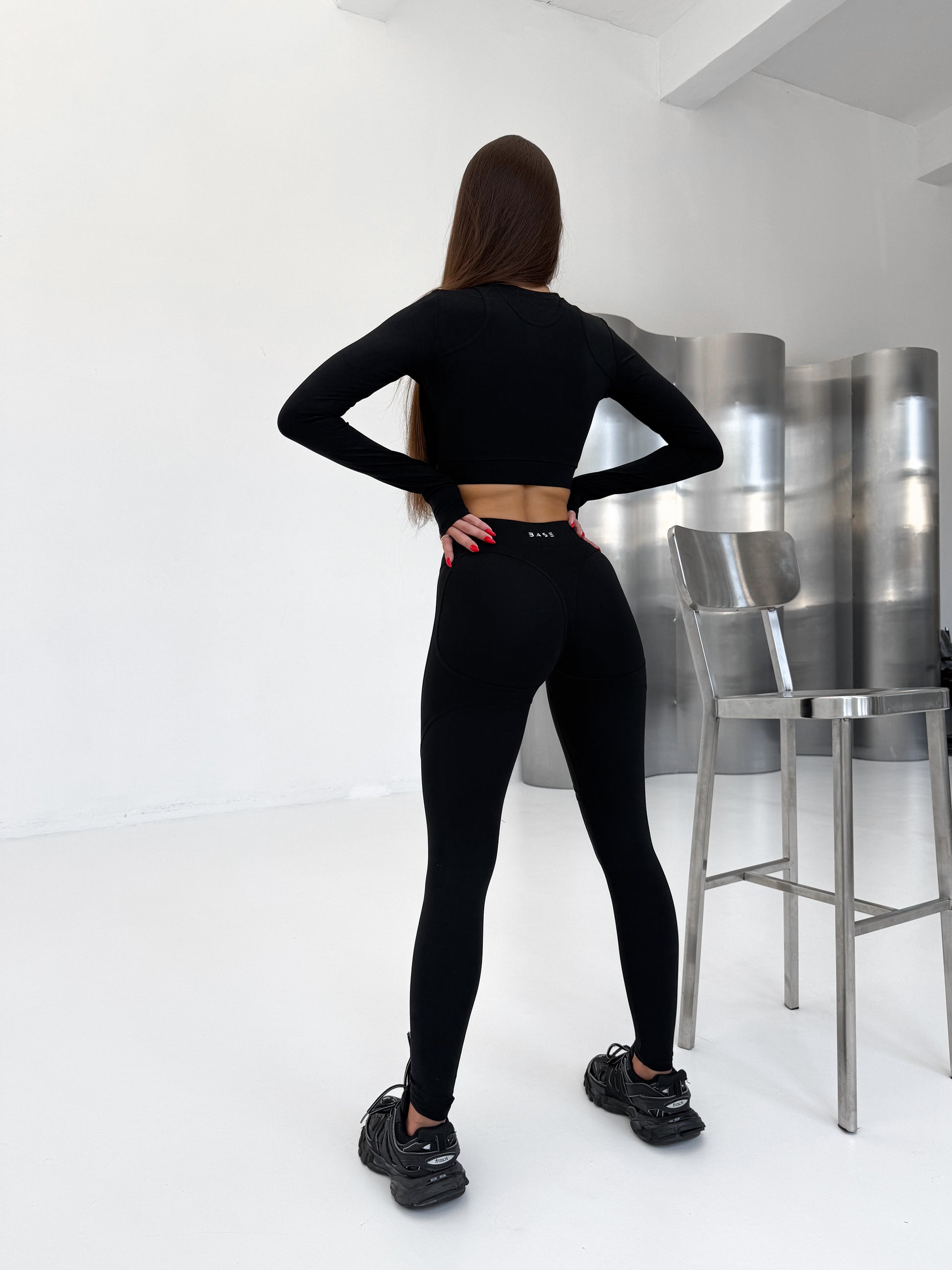 Rashguard posiada szeroką gumkę u dołu, która zapobiega podwijaniu się podczas treningu. Legginsy mają wysoki stan i imitację majtek. Materiał jest gęsty i dobrze dopasowuje się do ciała. Dzięki akcentującym szwom komplet prezentuje się niezwykle oryginalnie, a co najważniejsze, zapewnia maksymalny komfort.😍