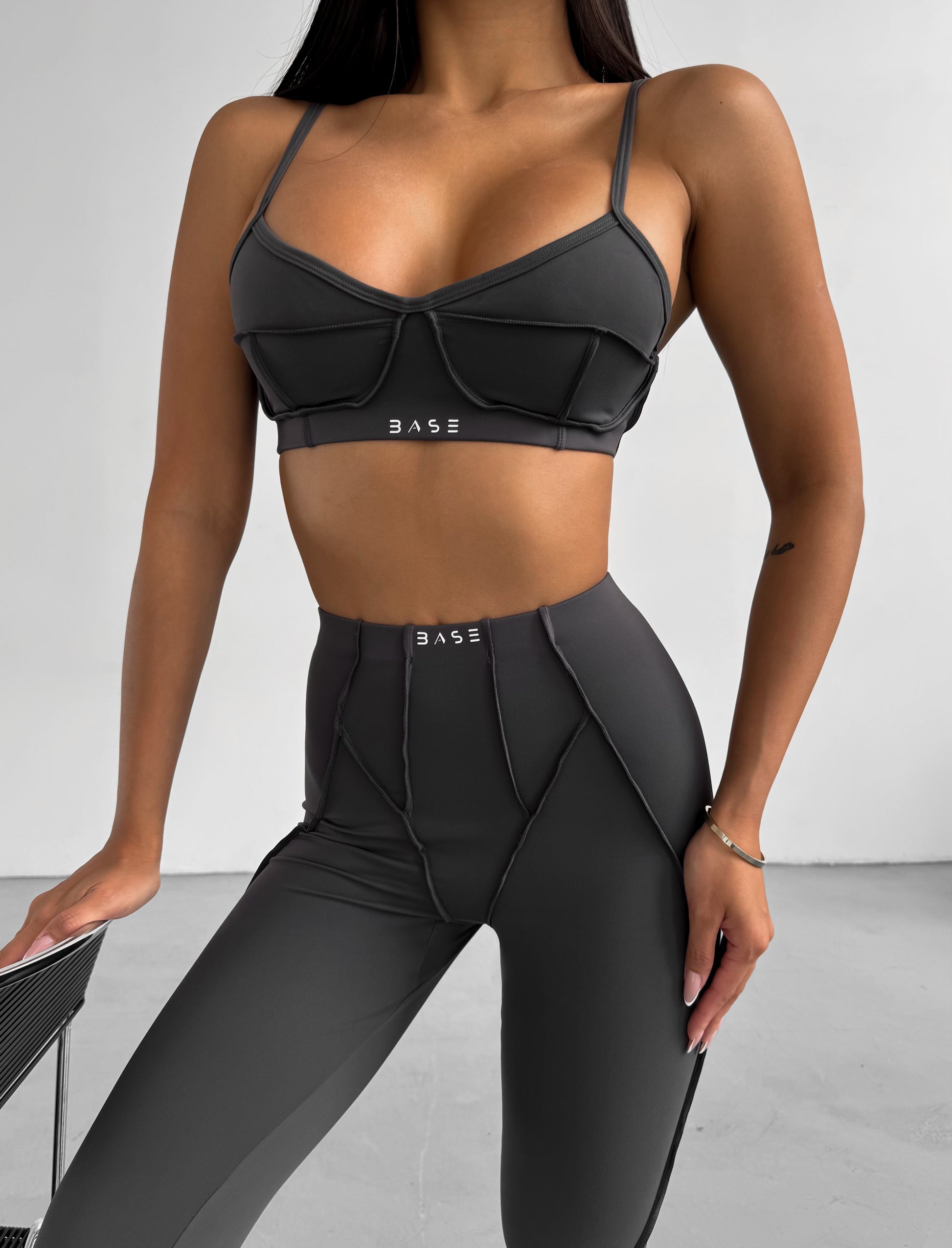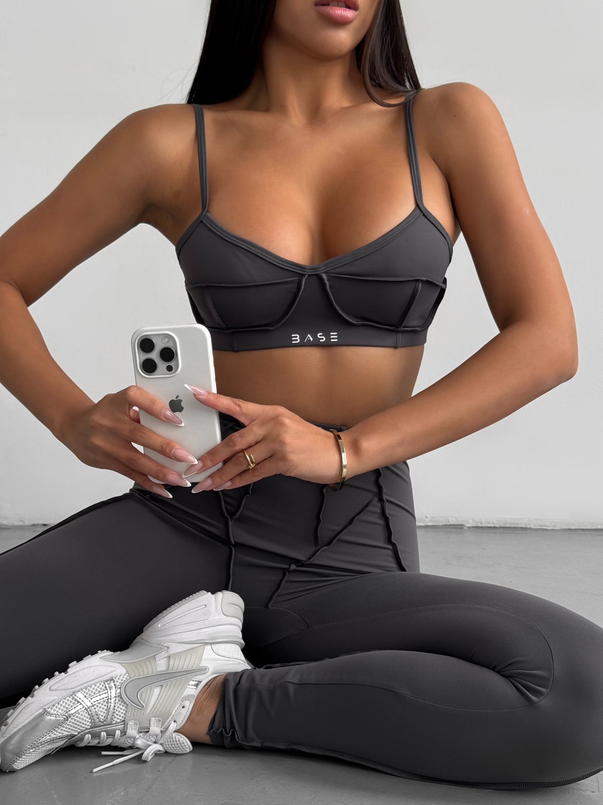 Krótki top z cienkimi ramiączkami. Dla wygody podczas treningu top ma wyjmowane miseczki.