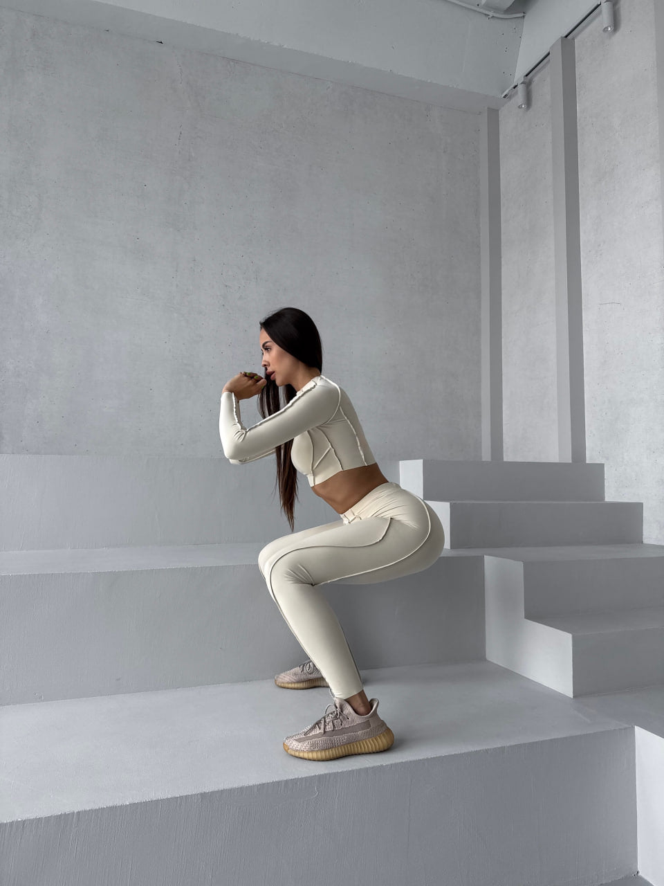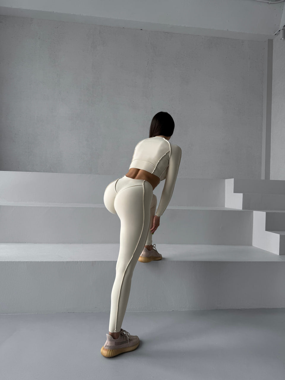 Legginsy mają wysoki stan bez push up. Akcentujące szwy podkreślają sylwetkę☺️