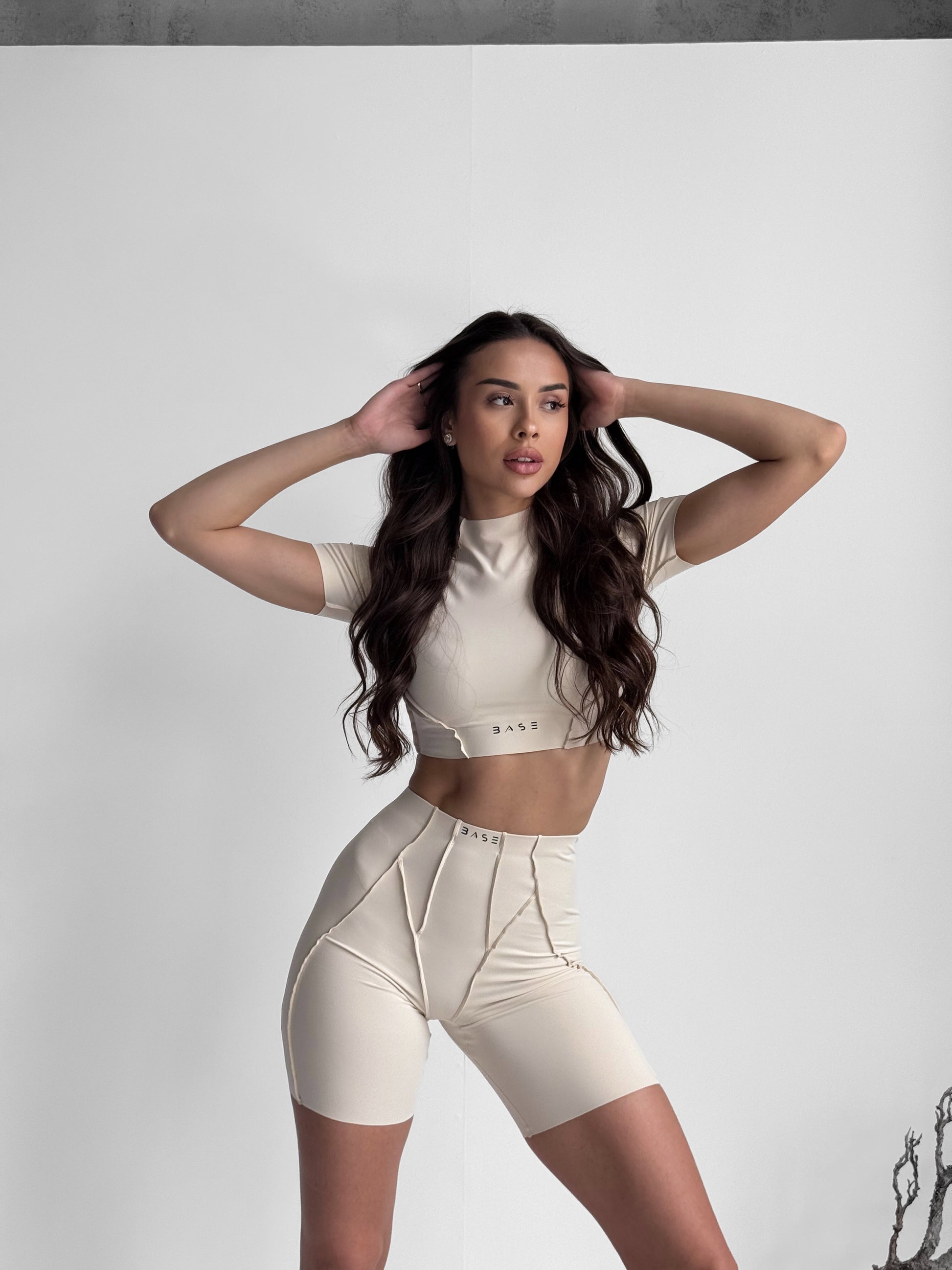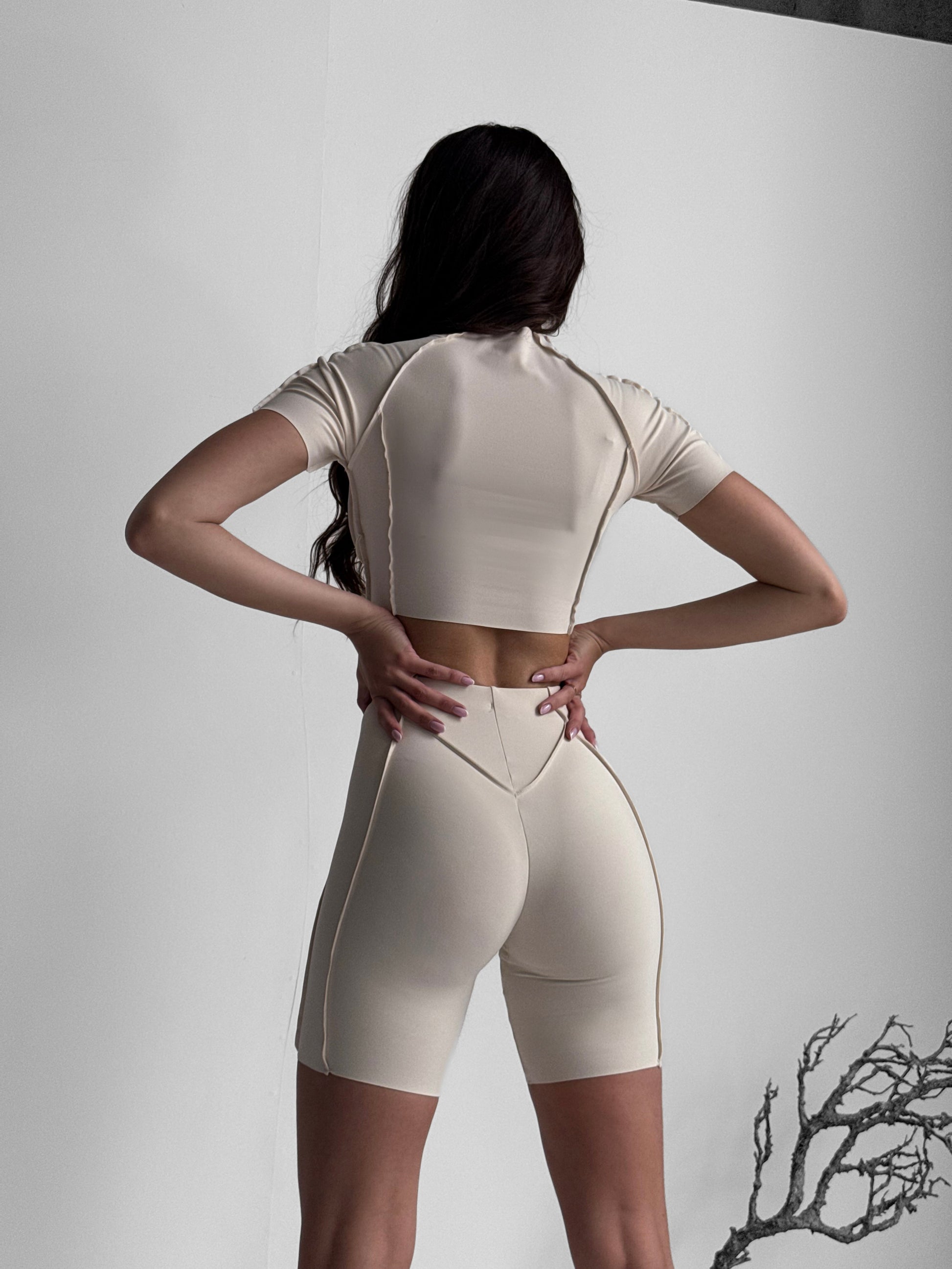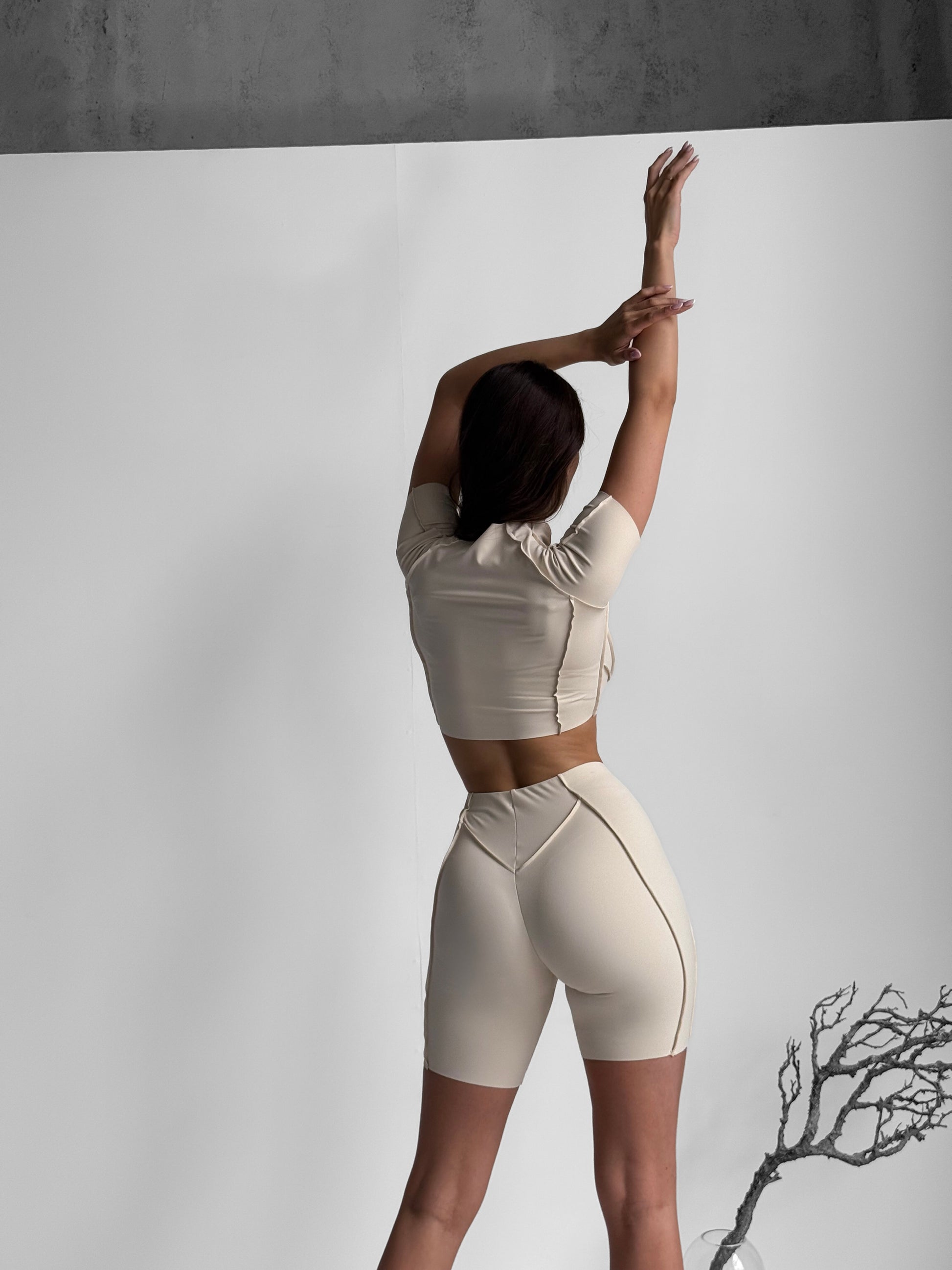Zestaw treningowy Damskie Butterfly T-shirt i szorty beżowy