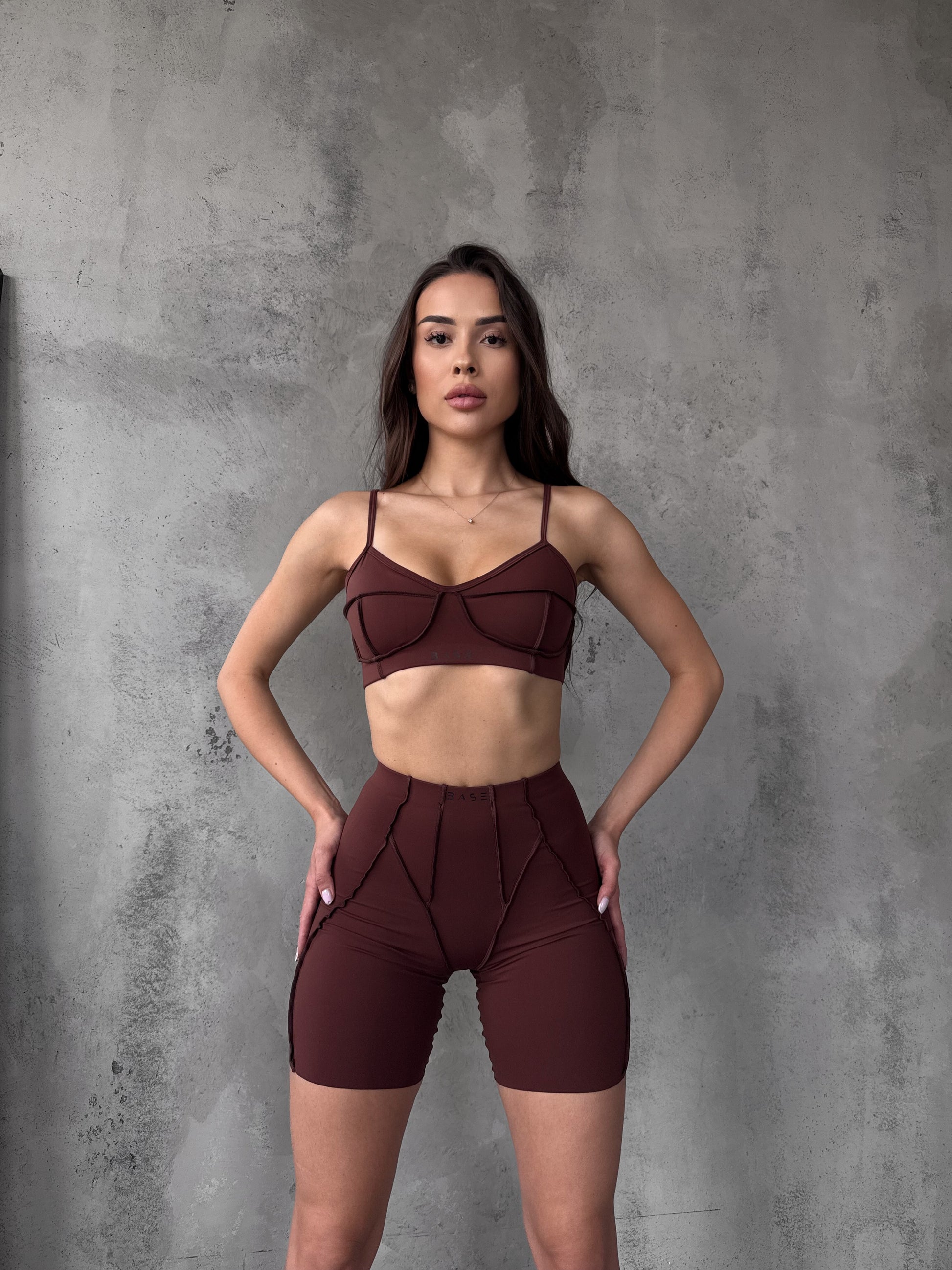 Zestaw treningowy Damskie Butterfly top z szortami czekoladowy